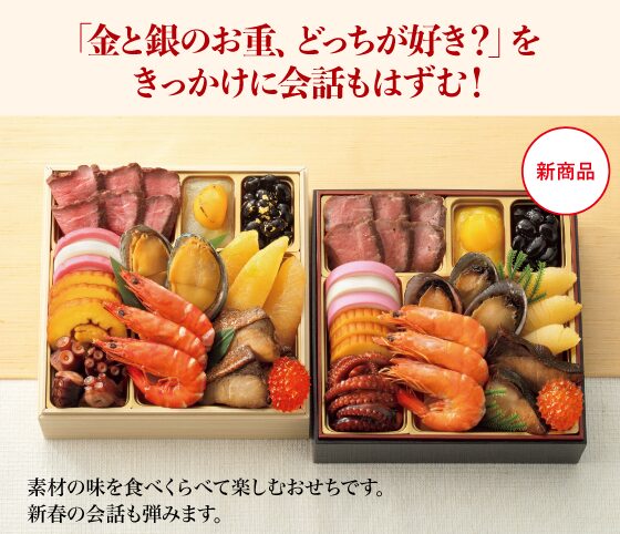■食べくらべるおせち二段重「較(かく) 金と銀の重」【2〜3人前・26品目】【イオンのおせち】