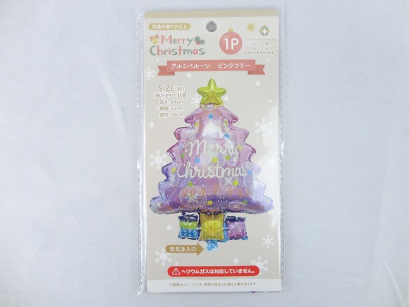 クリスマスの装飾に最適なツリー型のピンク色のバルーンです。