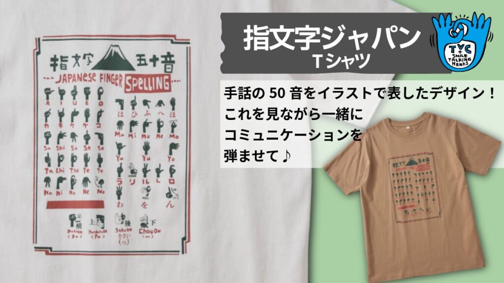 “ことばだけに頼らないコミュニケーション”をテーマに、手話や指文字をポップなアートとして表現したTシャツをつくりました。